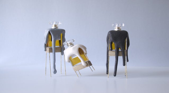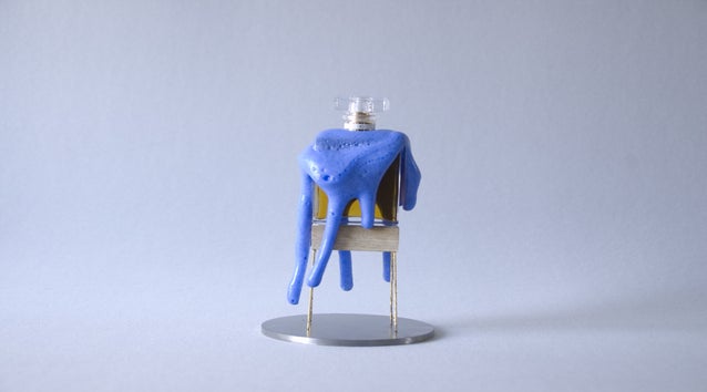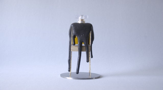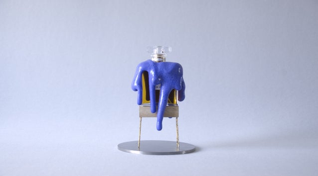 Scent is the most fleeting thing: smells don’t linger, and we can’t store them in our memories either. They can only be experienced in the moment – and until that moment, they can be stored, in glass bottles, like perfume. In Chanel Drips, the iconic Chanel 5 perfume bottle is given a ‘liquid’ jacket to wear, made of liquid foam that hardened as it was poured down. Placed on a wooden pedestal, they become like artworks, put on display and saved for eternity: the liquid shape of their jackets is a visual manifestation of the cursory and transient scent they carry inside.