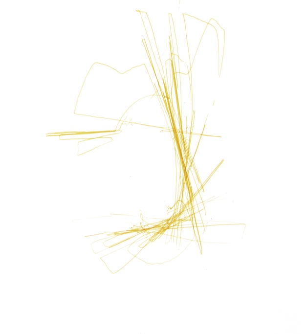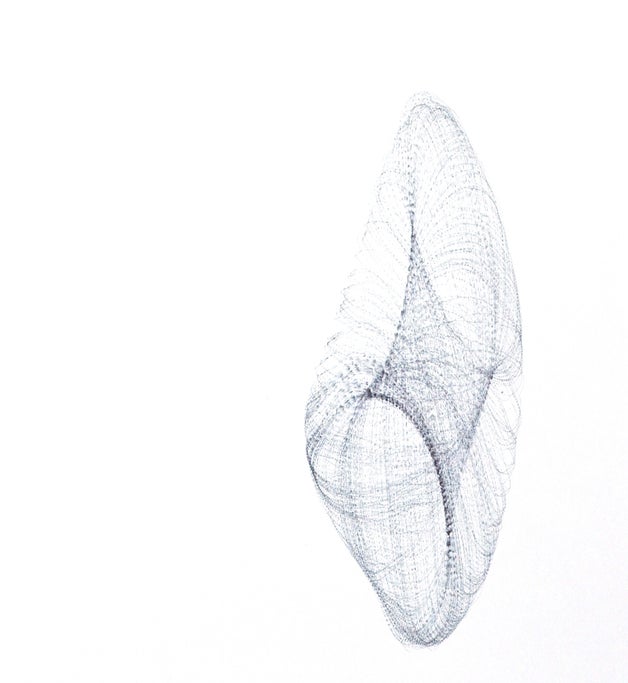 Discarded desktop printers, a spinning wheel and a cast-away chair form the basis of this machine, a machine that honours its printing ancestors by doing something altogether new. As the operator you feed it ink and paper and manipulate its settings, and the machine produces a drawing in response. The drawings may resemble the scratch work of an angry abstract expressionist, the detailed renderings produced by a 3D-scanner, or painstaking spirographs reminiscent of childhood. Each drawing is unique; the machine is incapable of copying itself. Challenging the traditional distinction between human volition and machine docility and muddying the waters of authorship, the Drawing Machine produces more than ink-on-paper artworks: it produces a new relationship to technology. This new relation is one not of control, but of surrender and surprise.