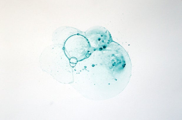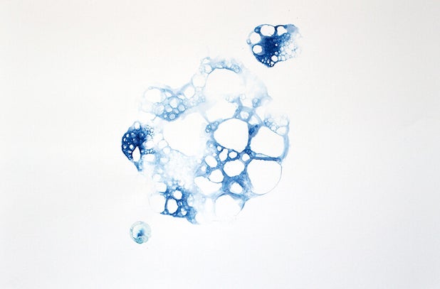 Soap, ink and paper collide to produce these permanent renderings of that most ephemeral entity: the soap bubble. Each work shows the trace of an instant, a moment lost to time but not, entirely, to the eye. In a Bubble is an experiment and an exercise in surrender all at once, for the circumstances of creation can only be controlled so much: ink, paper and process can be selected, but the result is never certain and always unique. The works are about chance, about unpredictability and surprise – and they are about delight, the delight that comes from having recorded something right before it vanished into thin air.