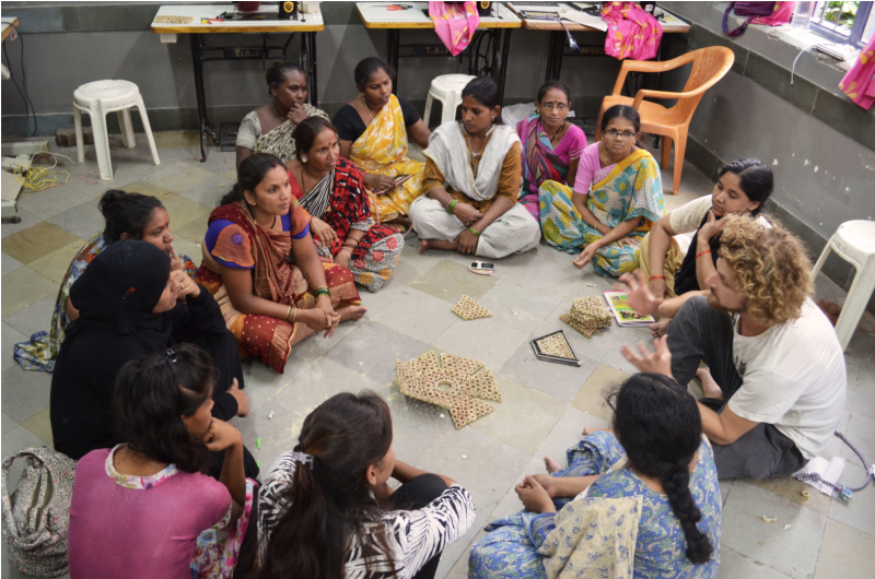 Working with the women participating in the Tiny Miracles project was the first encounter with teaching. I loved it! Explaining it goes beyond words. We used our hand and feet but more important we were working on an equal level, that was the key to connect with the women living in the slums of Mumbai, India.
