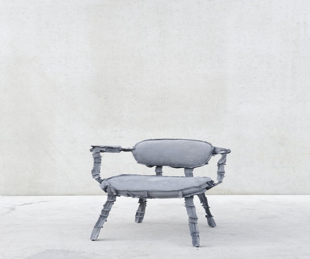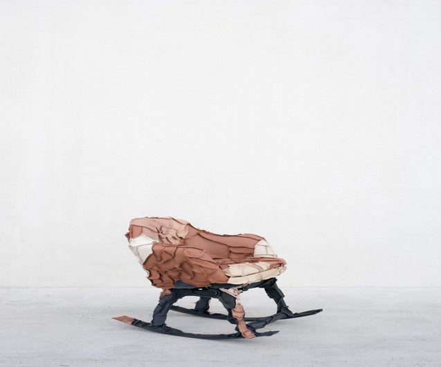 The objects in the Skin Collection were created by recombining bits and pieces of orphaned furniture and giving them a new jacket, a new skin, made of left-over leather. Together, these objects form a strangely organic family, almost creature-like with their long limbs and their soft, patchwork surfaces. And even when they’re on their own, the whole is more, much more, than its parts.